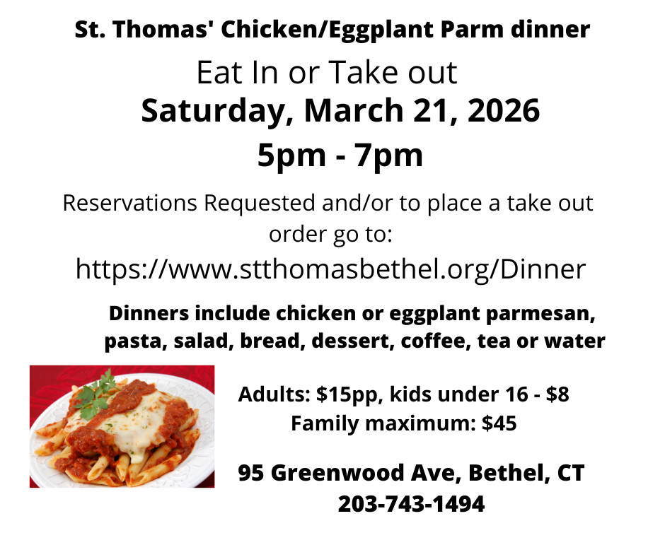 Come try some delicious handmade food. Use the link to register to eat in or take out: https://www.stthomasbethel.org/Dinner