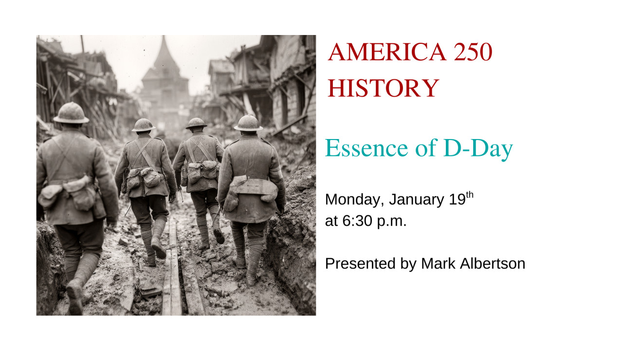 On June 6, 1944, 156,000 American, British, Canadian, and Free French troops dropped by parachute, crash-landed by glider, or hit the beaches at Normandy. This talk explores the reasons for the greatest amphibious operation in military history. This presentation will answer such questions as why was Operation: OVERLORD mounted? What was the importance of the landings? What part did it play in the final defeat of the Third Reich? And most important, what was D-Day's impact on the Cold War? Talk will include an overview of the war and the events leading up to June 6, 1944.